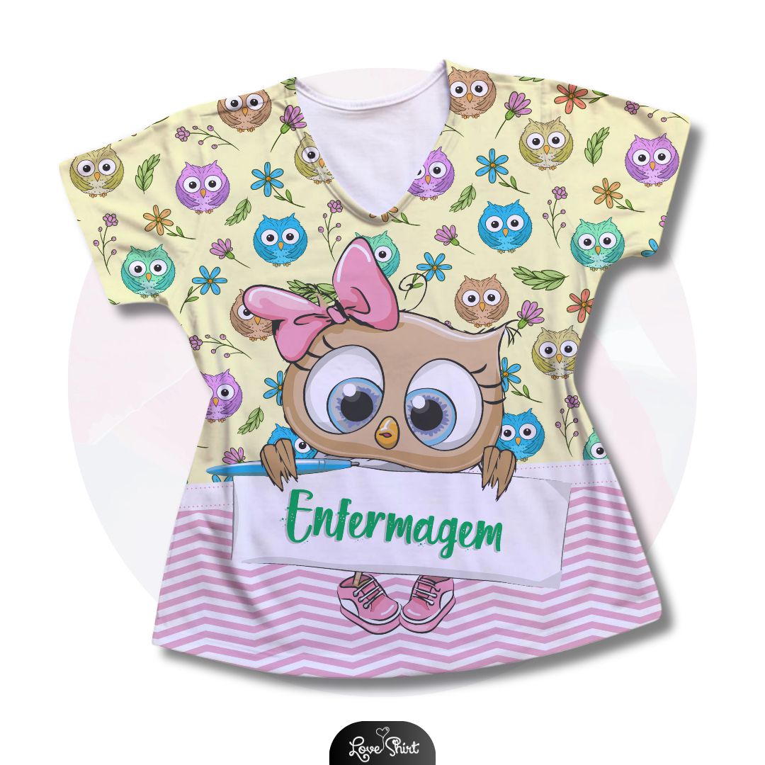 T-SHIRT PROFISSÃO ENFERMAGEM CORUJA BARRA FD AMARELO