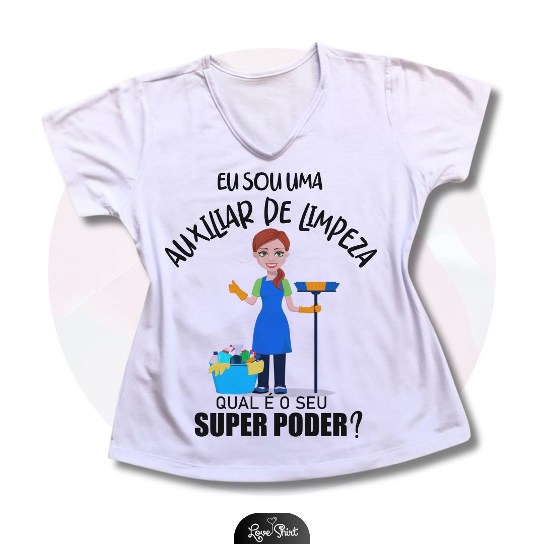 T-SHIRT PROFISSÃO AUXILIAR DE LIMPEZA CENTRAL MULHER SUPER