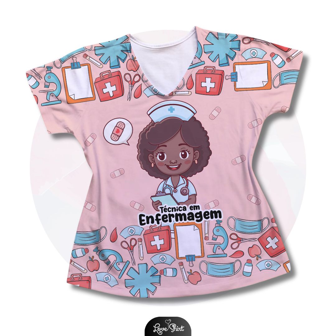 T-SHIRT PROFISSÃO TÉCNICA DE ENFERMAGEM MULHER BARRA FD ROSA