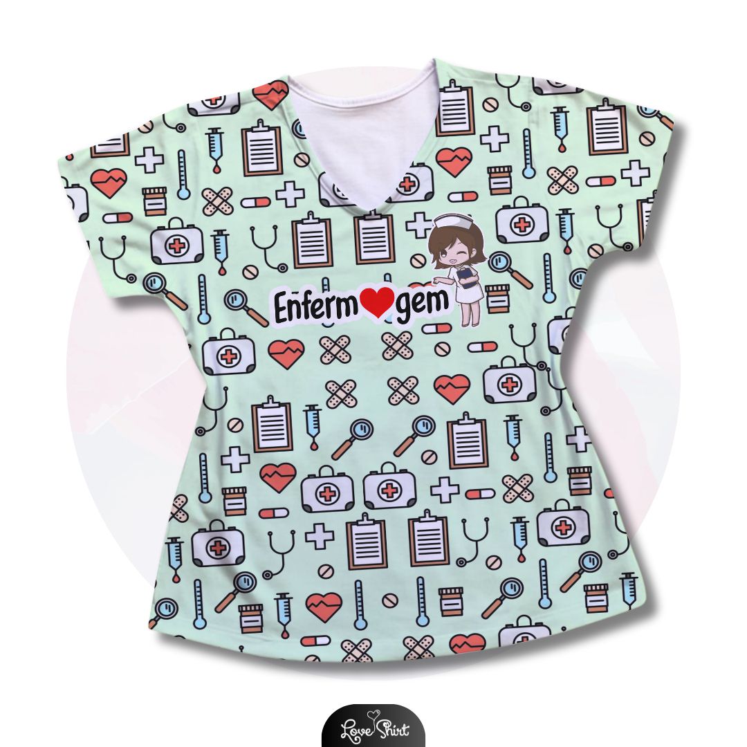 T-SHIRT PROFISSÃO ENFERMAGEM VARIADA FD VERDE