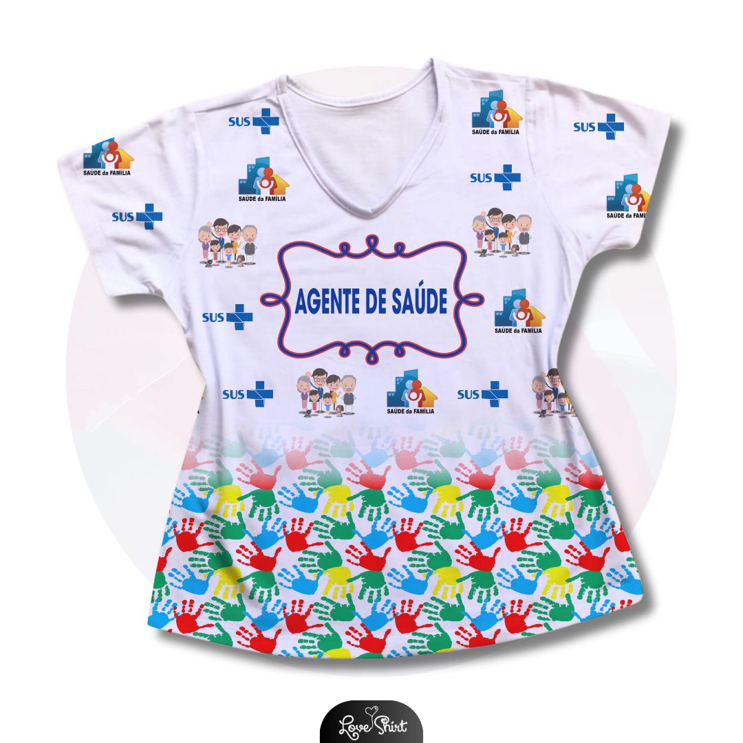 T-SHIRT PROFISSÃO AGENTE DE SAÚDE VARIADA SUS BARRA MÃOS