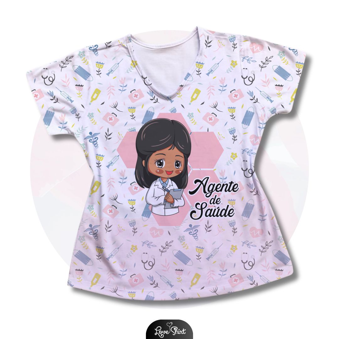 T-SHIRT PROFISSÃO AGENTE DE SAÚDE MULHER FD VARIADO 03