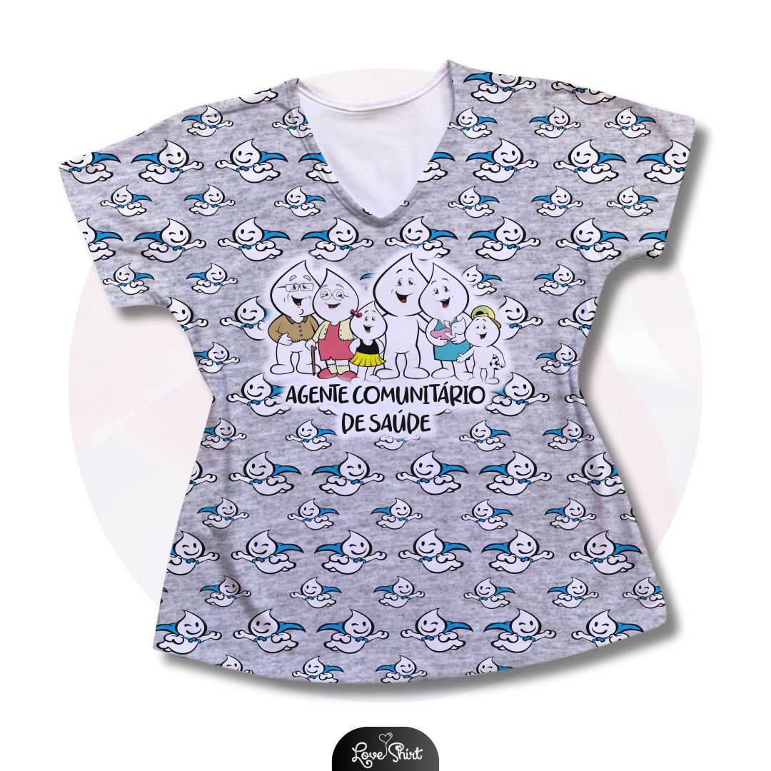 T-SHIRT PROFISSÃO AGENTE DE SAÚDE FAMÍLIA GOTINHA MESCLA
