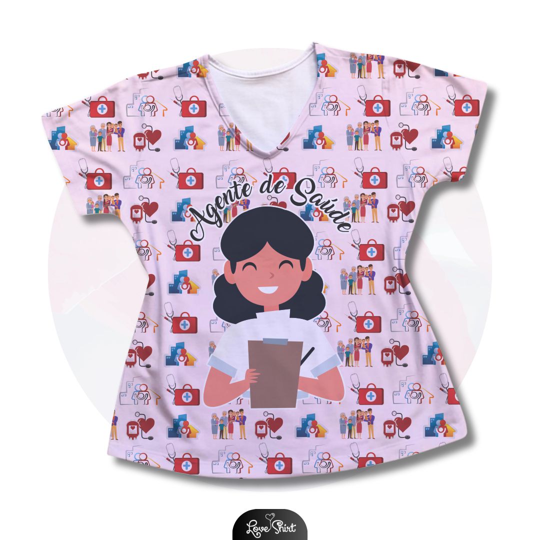 T-SHIRT PROFISSÃO AGENTE DE SAÚDE MULHER FD ROSA VARIADO
