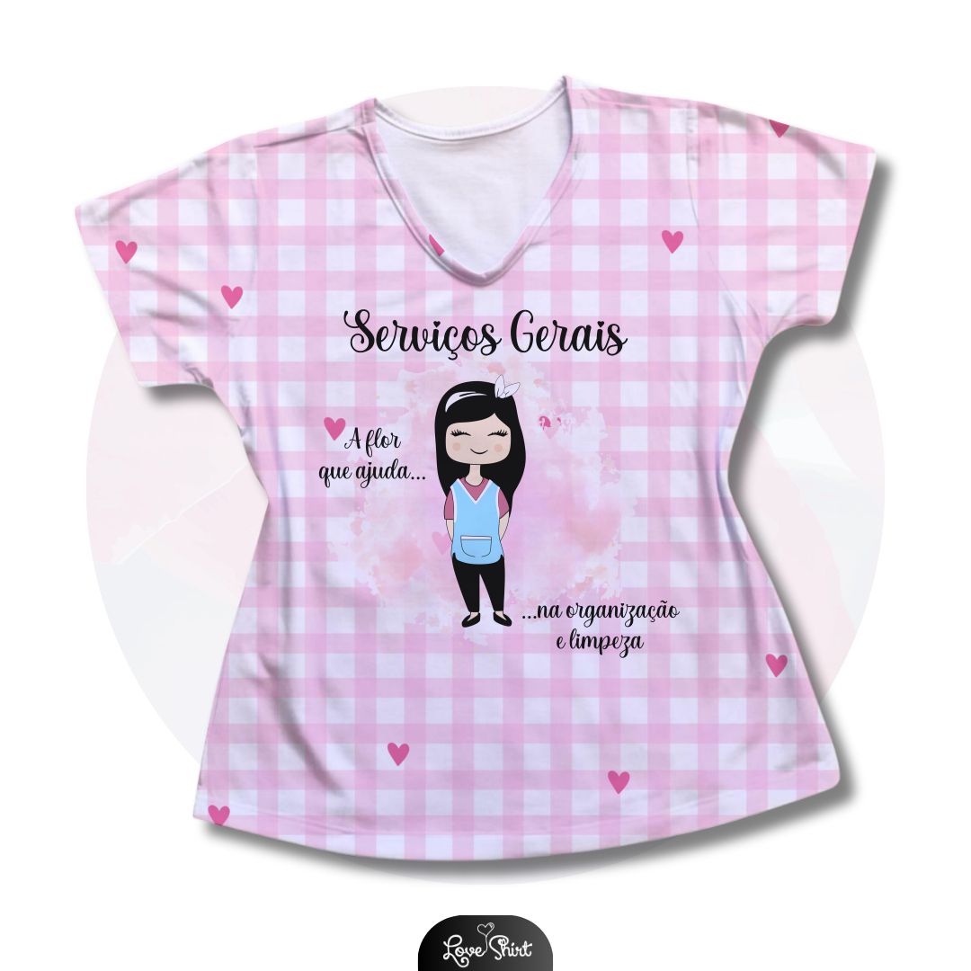 T-SHIRT PROFISSÃO SERVIÇOS GERAIS MULHER FD XADREZ ROSA